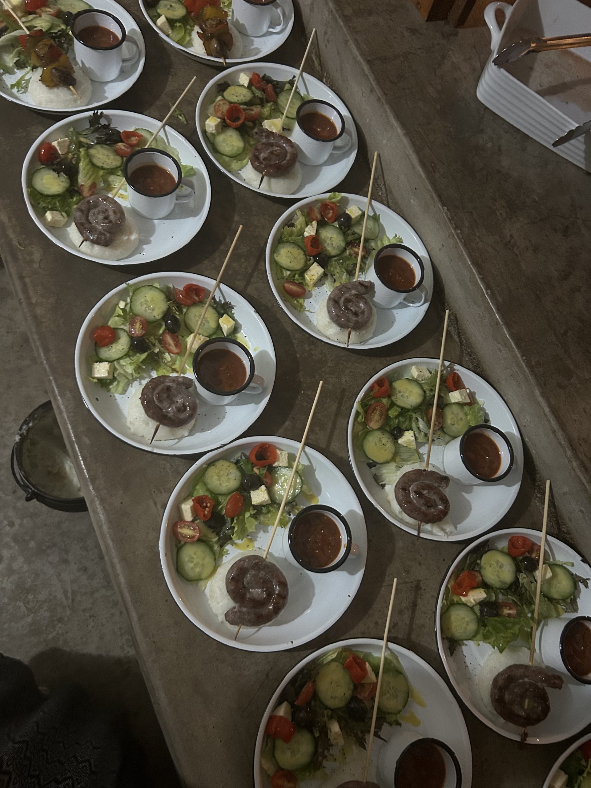 Viel gelacht, getanzt und gesungen wurde von morgens bis abends in der Küche. Die lebensfrohen Köchinnen brachten mir bei, wie traditionelle Gerichte wie Boboti, Braai, Pap und Melktert zubereitet werden. Ich habe geholfen, Vorspeisen vorzubereiten, Gemüse und Obst geschnitten, Lunchboxen für die Safaris gepackt und schließlich für das Dinner angerichtet. Die Küche war stets ein Ort der Herzlichkeit und des Zusammentreffens und ich habe dort weit über den Tellerrand hinaus gelernt.